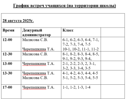 12-00 6-е, 7-е, 10-1, 10-2, 11-1, 11-2 12-30 8-е, 9-е, 13-00 2-е, 3-е 13-30 4-е, 5-е 17-00 1-1, 1-2, 1-3, 1-4